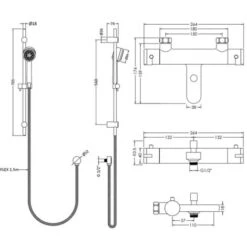Nuie Reef Thermostatic Bath Shower Mixer With Slim Single Function Slider Rail Kit – Chrome