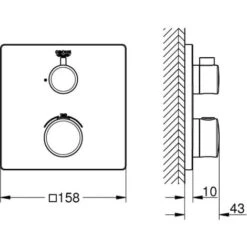 Grohe Grohtherm Thermostatic Mixer For 1 Outlet With Shut Off Valve, Chrome (24078000)