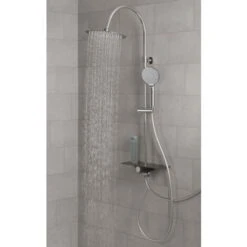 Overhead Shower Set With Single Lever Mixer And Tray WATERWAY Chrome-White SCHÜTTE
