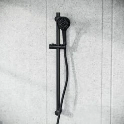 Square Shower Matte Black Handset And Hose With Slider Riser Rail Bracket