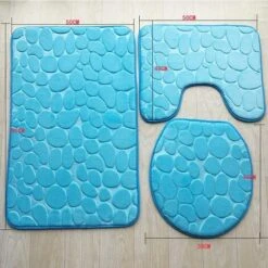 Bath Mat And Toilet Contour Set 3 Set Non-Slip Bathroom Toilet Cover (Blue)