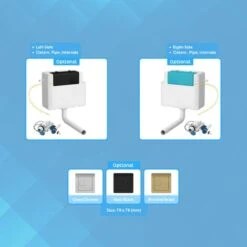 Rimless D Shape Back To Wall Toilet Pan With Soft Close Seat & Concealed Cistern Black Plate Button