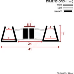 Magnetic Shower Seal For Screens Or Doors | Fits 4, 5 Or 6mm Glass | Sold As Pairs | MAG034 (200cm)