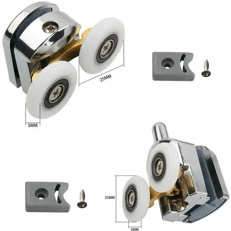 - Package includes: 4 top shower door rollers + 4 bottom shower door rollers
