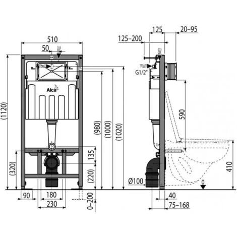 Features of the Self-supporting frame for wall-hung toilets (AM101/1120-DN100) :