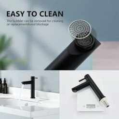 The flow rate of the bubbler of this bathroom faucet is 9 L/MIN, without annoying noises or splashes, and avoids wetting clothes or the sink.