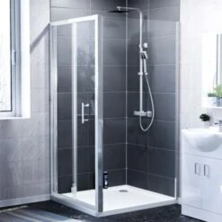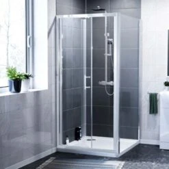 The elegant bi-folding door and side panel shower enclosure has a 20 mm wall adjustment for when the walls are slightly out.