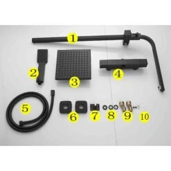Adjustable height in over head shower and handheld shower, 15 degree tilt swivel head.