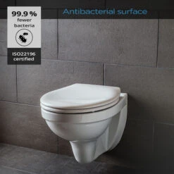 So that everything in the bathroom is quick, easy and clean, the Dombach Kaiana toilet seat is well thought out and designed. Thanks to Softclose, the toilet lid closes automatically, as the seat lowers automatically and silently. For more hygiene in the bathroom, you can also remove the toilet lid from the toilet bowl and clean it at any time with just one push of a button. Then simply put the lid back on: done. Everything is easy and done in seconds. Germs no longer stand a chance in your bathroom. In addition, the toilet seat has a dirt-repellent surface thanks to its antibacterial thermoset material. This protects you and your family even better.The Dombach Kaiana toilet seat can also be installed in less than 3 minutes thanks to the assembly instructions and simple construction. The scratch-resistant surface ensures a long operational life in the bathroom.