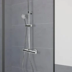 This PERFECT NEO complete overhead shower system from CORNAT is an excellent solution for a luxurious shower experience. The slim design, clean lines and shimmering appearance are designed to fit perfectly into your bathroom interior.