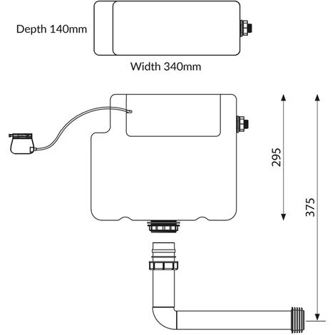 - Dimensions: (H) 375mm x (W) 340mm x (D) 140mm // without pipe (H) 295mm