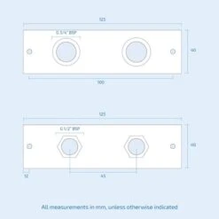 Incoming hot & cold water goes into the back of the plate and thermostatic mixer bar goes onto the front of the plate.