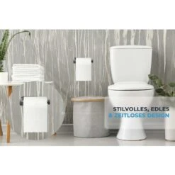 A black matte finish with powder coating gives the toilet paper holder the final touch