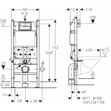 - For mounting a wall-hung toilet with a fixing distance of 18 cm or 23 cm