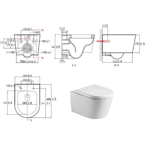 - Swiss Aqua Technologies Rimless wall-hung toilet and invisible fixings + soft close seat (SATrimless)