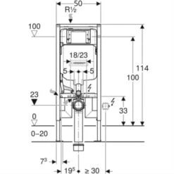 - Depth of foot plates suitable for installation on UW 50 profiles and Geberit Duofix system rails