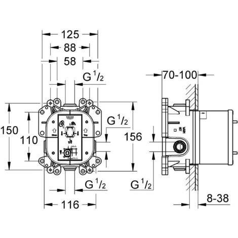 Features of the Rapido E Universal Rough-in body for concealed installation (35501000):