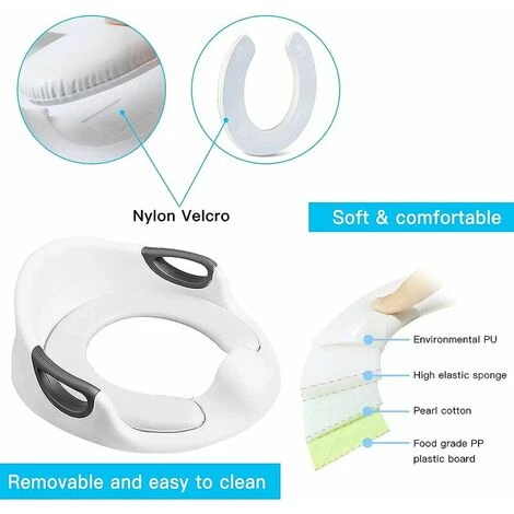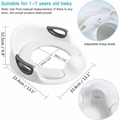 - Safety and comfort – the handles provide security. In addition, the adjustable levers and anti-slip strips keep the potty training toilet seat secure. securely in place. This boosts the baby’s self-confidence. and reduces the fear of falling off the toilet, improves and trains your baby’s ability to go to the toilet alone