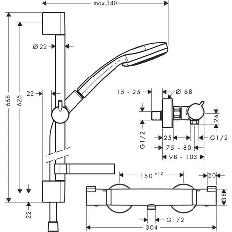 Features of Croma 100 Shower set with Ecostat Comfort thermostatic mixer and shower rail 90 cm + 3jets Hand shower , Chrome (27085000) :