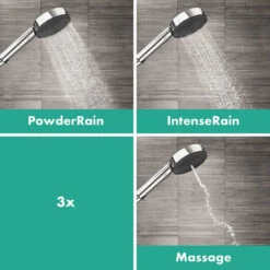 Showering pleasure in a large format with the incredibly soothing PowderRain jet. The Hansgrohe hand shower with a diameter of 105 mm surrounds you completely with water – and guarantees XXL performance in your bathroom.