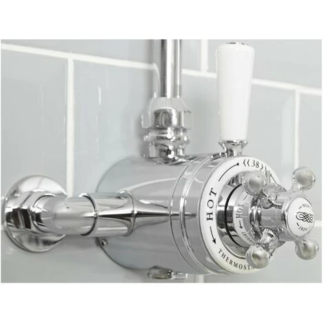 – Offers thermostatic temperature control to prevent scalding and freezing