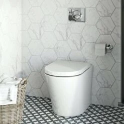 Part of the bestselling Tate collection, this stunning back to wall toilet comes complete with a minimalist style soft close seat, keeping things nice and quiet. The latest rimless technology means this toilet is more hygienic than regular toilets, with nowhere for germs and bacteria to multiply.