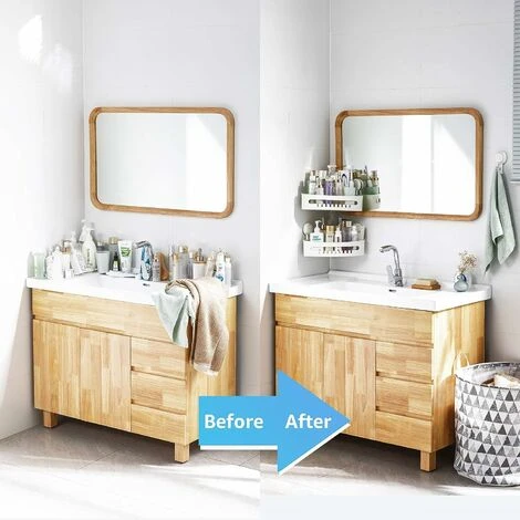 No-Drilling Installation: No need to drill holes and denature the wall of the corner shower shelf, also use the tools to install this suction cup shelf. Just choose and clean a slippery surface, peel off the protective film and press Put them together. The suction cup will deflate all the air until you hear a boof sound. Even kids can install this bathroom storage, which has excellent durability, temperature resistance (-4°F-174°F), water, moisture, oil and aging .The thick ABS shower tray can load 10kg and keeps the sliding surface well for a long time.Drainage and adjustable hook design: Drainage holes to maximize ventilation and water flow make your bathroom accessories clean.Can adapt to any angle position of your m season.< br / > Multipurpose: This shower caddy offers you the best organizational solution for bathroom, kitchen, basement, office or RV to store shampoos, To transport sponges, soaps, bathroom accessories, kitchen utensils, etc. Hooks on the caddy for hanging towels and brushes.