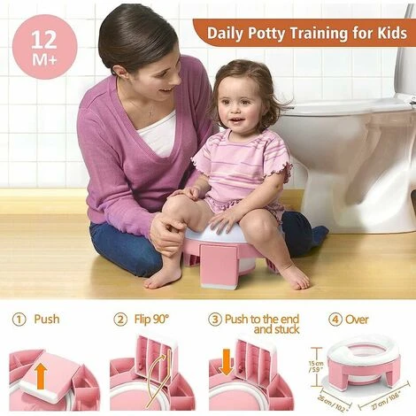 Multifunctional: 3-in-1 travel toilet seat for potty training. Kids can use it at home or on the go. The leg locks are secure and can be used as stand-alone toilets in an emergency or to install a children’s toilet. The rubber base sits securely on the floor or on the toilet without slipping.