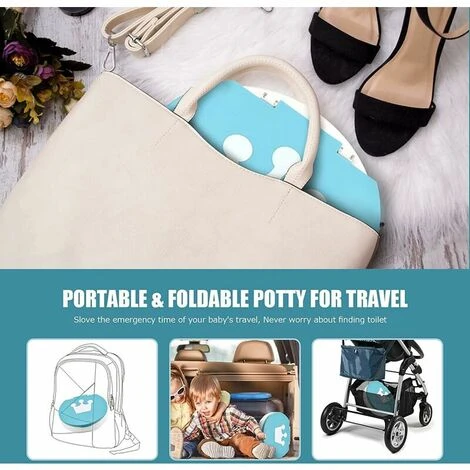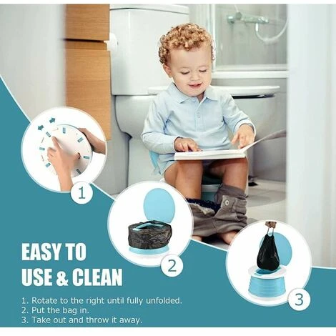 Easy to use and clean, don’t worry about the baby’s urgency: quickly fold or open in 1S, just turn right until until the collapsible toilet unfolds completely, then put it in your pocket. Comes with 15 heavy duty bin liners designed for stubborn waste. After using the baby potty, simply remove the trash bag and throw it away. It is a small portable toilet, which is the ideal baby potty.