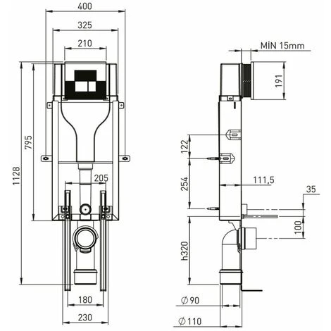 - Supplied complete with WC Frame, Cistern with Chrome Flush Plate