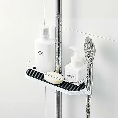 Material – The shower caddy is made of thickened ABS, the maximum loading capacity is 15kg. The fence is made of aluminum, rust resistant. Adjustable Height – The shelf can move to different heights as you want Widely Used – Comes with 6 sets of different size rubber sleeves, suits shower bar with diameter of 19mm – 25mm (Note: bar is not included, please measure the diameter of your shower bar if suitable)