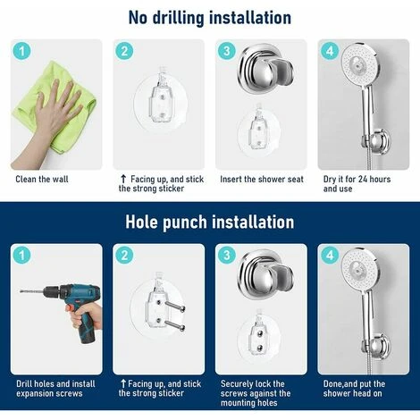 2 Installation Methods: No tools needed for easy installation, you can install and use it effortlessly and quickly. better put it on a hard and smooth surface, such as glass, ceramic, metal surface, tile, etc. suction cup shower head holder you can also choose the tool installation and use it more firmly. .