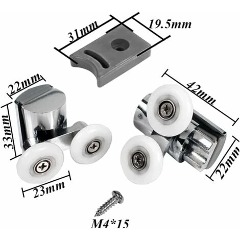 Wheel diameter: 23mm. Suitable for flat sliding shower doors and curved sliding shower doors