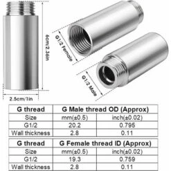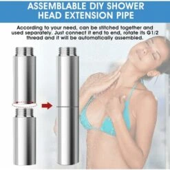 [Standard G1/2inch Thread]The G1/2inch shower head extension arm is suitable for most shower accessories, the straight shower extension pipe can be used in the bathroom standard shower system: shower arm, shower base, shower head and Handheld Shower hose.[2 pieces of Shower Head Extension Arm]The package includes 2 pieces of straight bathroom shower head extension arm, 6cm long for each one, which can be freely matched for your need. It effectively solves the shower problem caused by the low installation position of the shower head holder or the shower tube being too short allowing you to enjoy the shower happily.[Stainless Steel Material]The shower extension tube is made of stainless steel with chrome plating, which is very strong, durable, leakproof and withstands high pressure, heat, salt, acids, minerals and grit contained in your water.[Modern & Fashion Decoration]High-gloss silver appearance is beautiful, noble, generous and smooth can match any style of bathroom. Provides a more comfortable and cool experience of bath for you.[Suitable Occasions]The pipe fitting can also be used in the bathrooms, RVs, garden, swimming pool, fuel equipment, plumbing, pneumatic system and or other outdoor places.