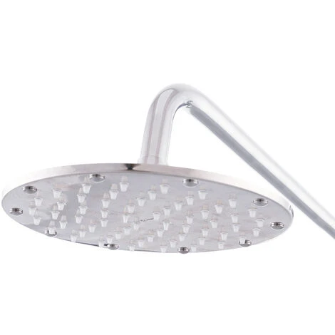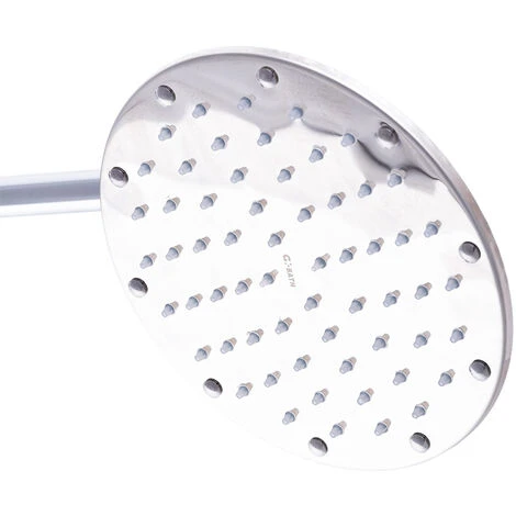 Shower head in chrome finish with rain effect jet. It has silicone-based spikes that make it easy to clean the sprayer, preventing limescale from accumulating. Rainwater consumption at 3 bars is 24 l/min.