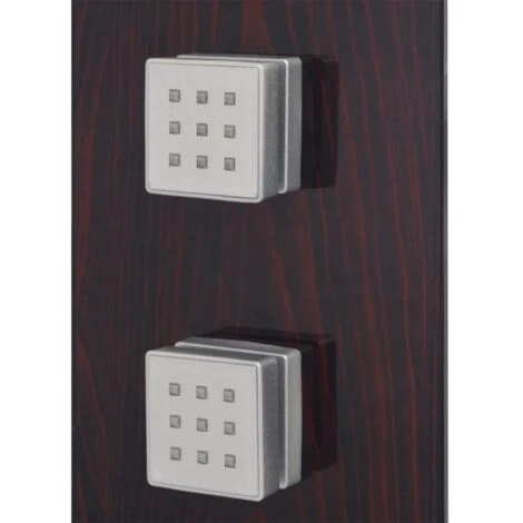 The shower tower is made of high-quality glass with a beautiful wood grain print. It has three functions: rainfall, massage jets and a handheld showerhead, which can be easily selected by means of a knob.