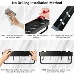 【Wide Range of Use】Matte black shower caddy, elegant and beautiful. Suitable for bathroom, kitchen, living room, bedroom, balcony. Note: Not suitable for painting walls, plaster walls, cement walls, wallpaper walls.