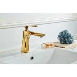 Basin faucet, plated; Gold and Chrome Basin Faucet, Gold Plated Gold and Chrome Faucet Single handle with durable ceramic cartilage, easy to remove. Control temperature and flow