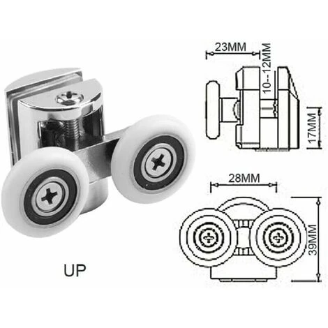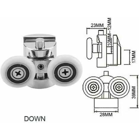 4 Pcs:Double shower door rollers wheels 4pcs 23mm, 2 up and 2 down shower door rollers.
