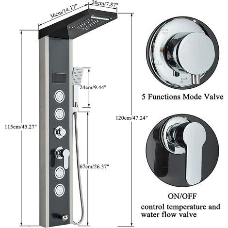 2.【Temperature Control Display】It has a large LCD screen that can monitor the water temperature in real time, and can intuitively see the shower time, which can effectively prevent burns and protect you and your family.