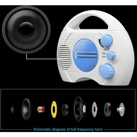 Easy to Use: Compact design with knob to control volume and built-in speaker to make your shower experience more interesting. Allows you to listen to music and news while showering to relax. Portable and compact design: easy to put on the sink or bathroom shelf, does not take up space. With AM and FM reception for better radio signal reception. You can listen to your favorite radio stations and shower in music, shows and news. AM/FM Radio: The waterproof radio for the shower. Enjoy a cable-free life while listening to your favorite audio content in premium sound. Prepare a great gift for men, women and children who love music and the outdoors【Built-in analog tuner】: Updated features: multi-band coverage, automatic search signal, clear voice, strong signal. Flame retardant ABS material, UV treatment, not easy to scratch. Rotary control knob.